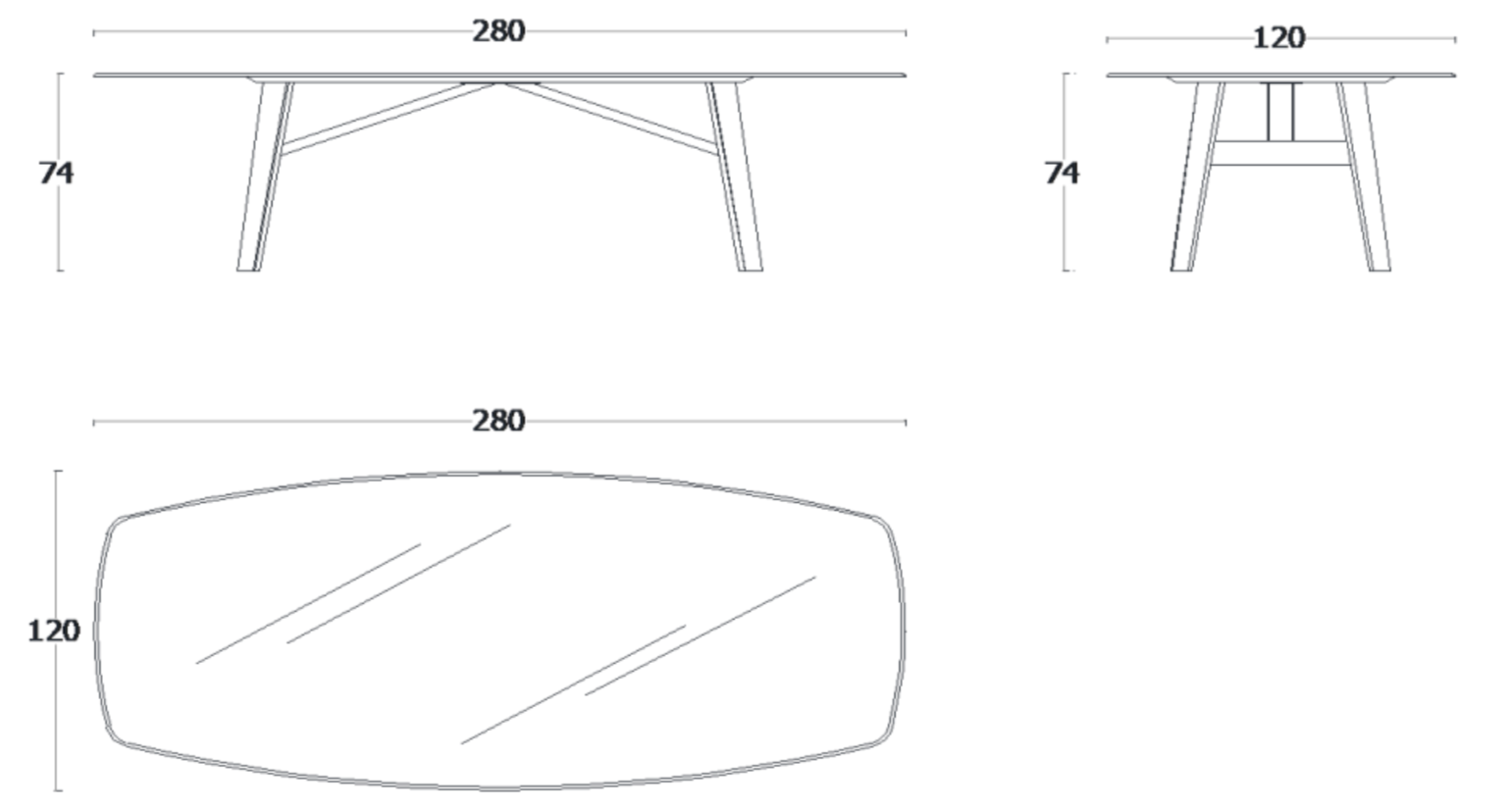 Ш 280 × Г 120 × В 74