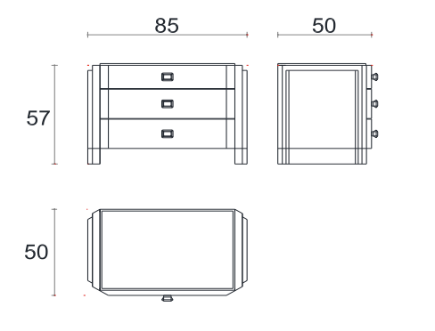 / Тумбочка с 3 ящиками и бронзой Bronze Nightstand